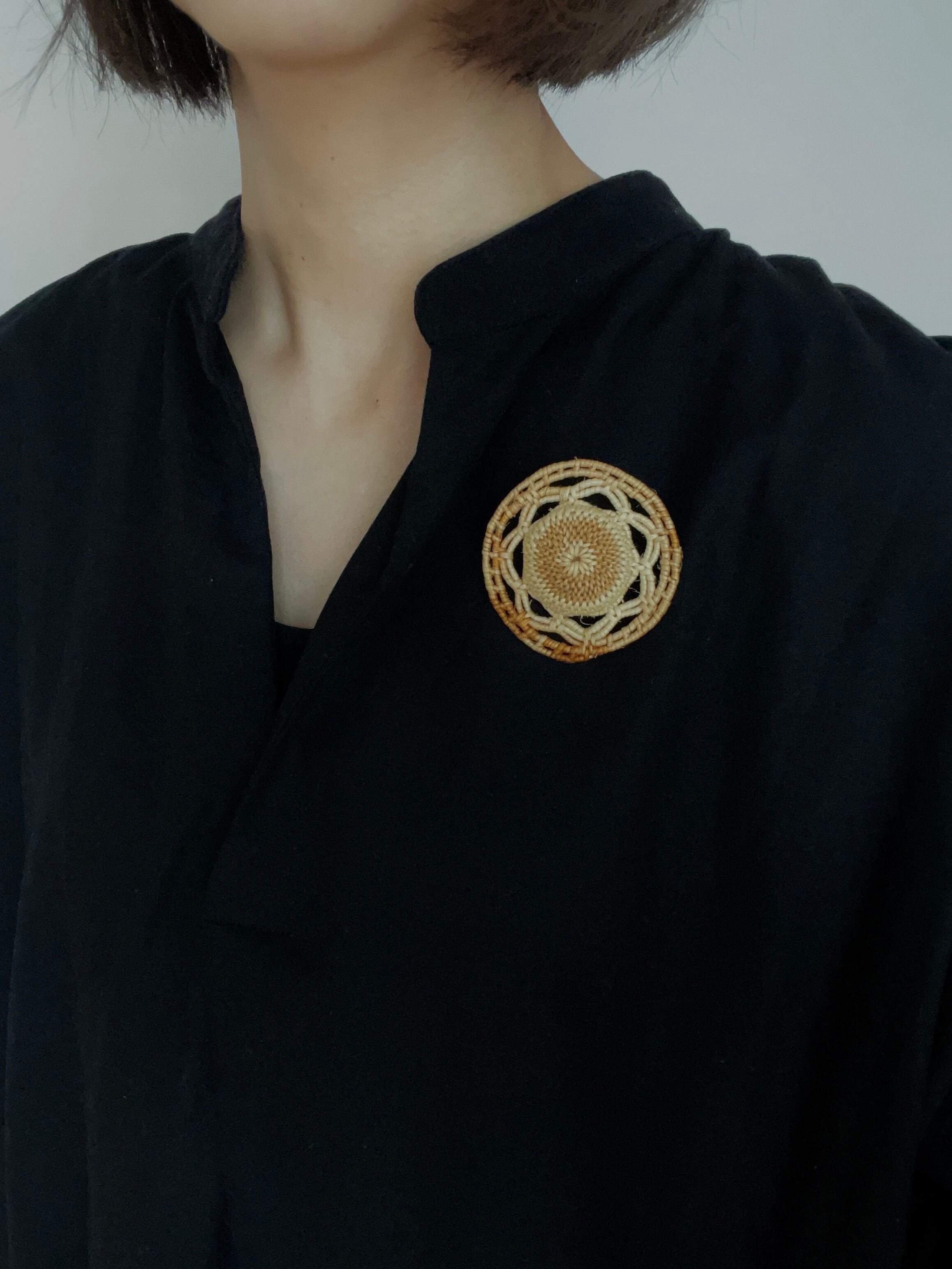 松の根で編まれた、キャノチエブローチは華やかでエレガントな装飾品です。
